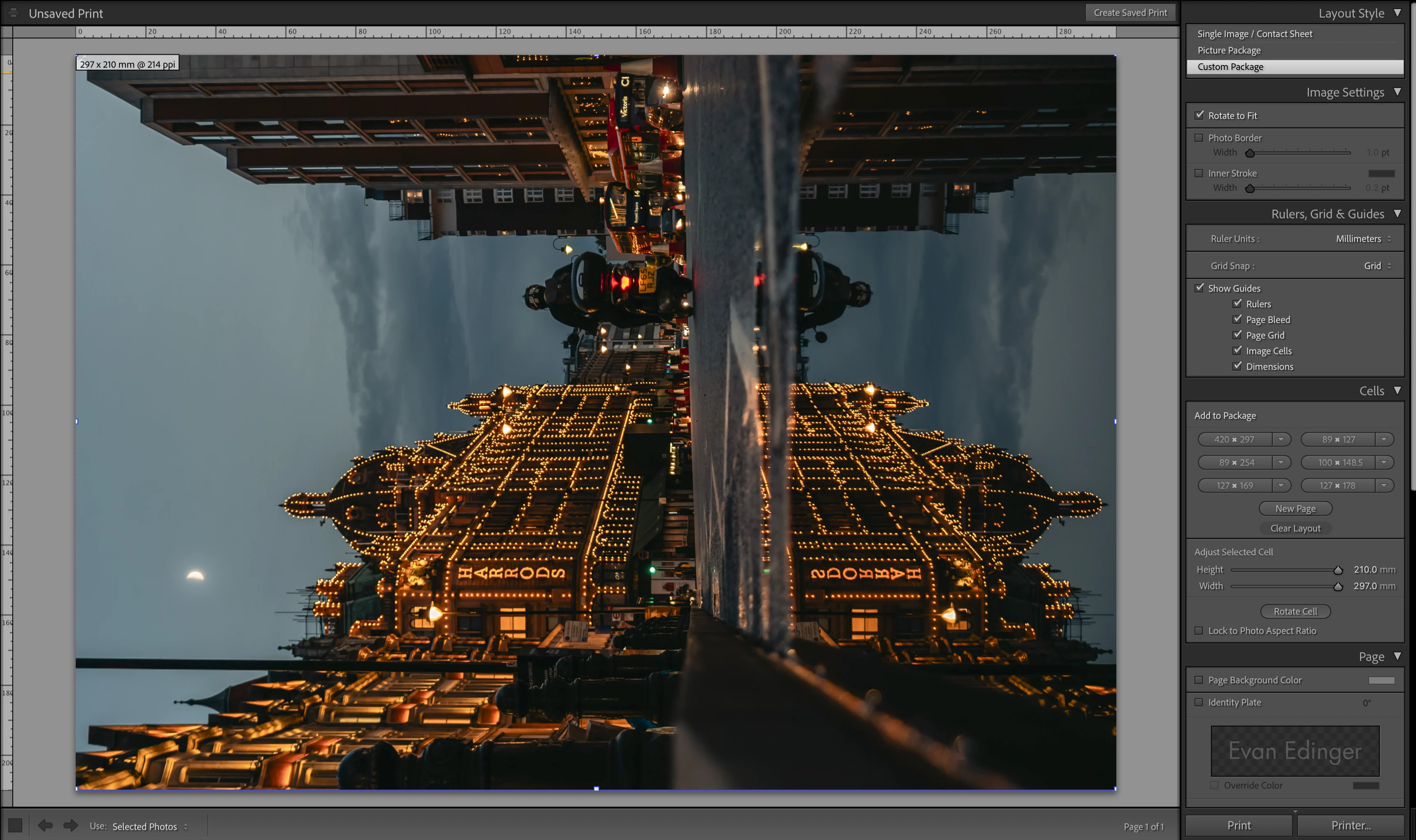 However, when using the "custom package" setting and creating a cell of the exact same length and width, the ppi in the corner shows nearly 100ppi less. I wanted to create a custom package of 2 A4 images printed on A3 so I could cut them in half, but any custom package that I create tells me the ppi is abyssmally low and not good enough quality to print.