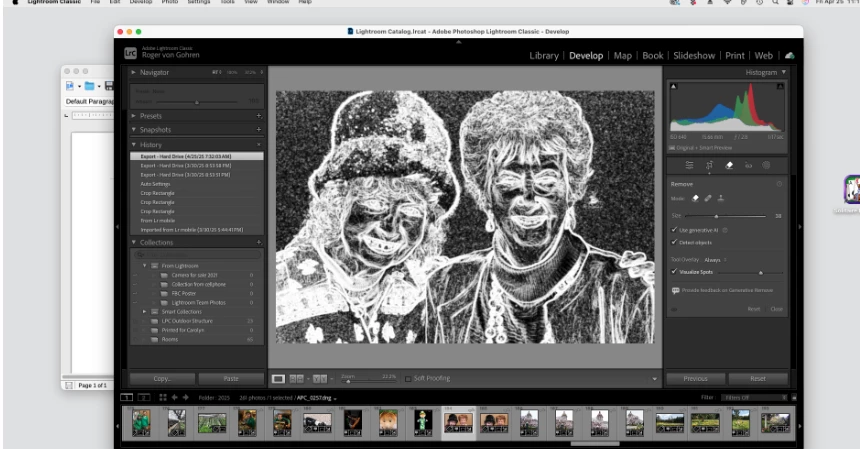 In LR Classic, Ver 14.2, running on Mac Mini Sequoia 15.3.2, in the Develop Module, when clicking on the remove tool: My color photo turns to B & W and light and dark areas in it are all reversed (Normally light areas become the dark areas). See the screen grab: