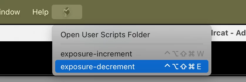 I have a very simple user script in Lightroom. It decreases exposure by 0.05.