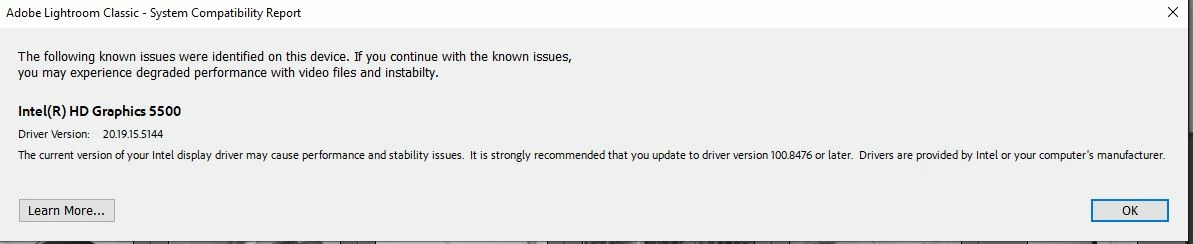 If the Graphics card driver cannot be update were does that leave me? With an unstable system? Unusable Lightroom? etc.