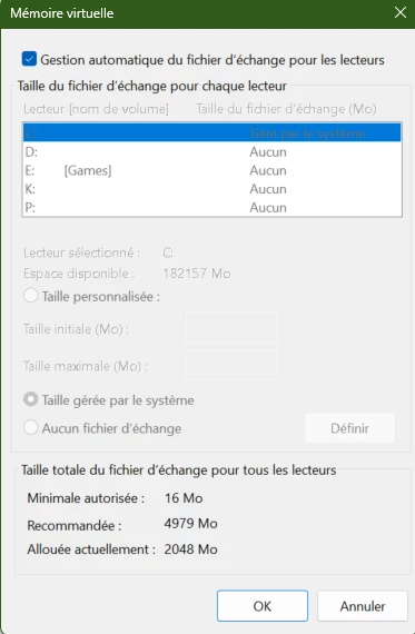 How large do you let the Windows Paging file get (likely you accept the Windowsd OS default of Windows determining)