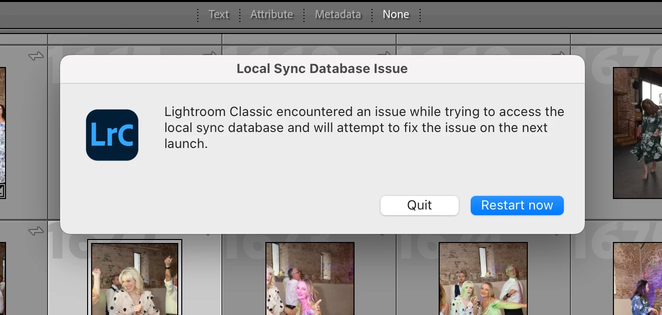 This error message has been popping up everytime I try to work on my lightroom classic catalog today, I can't work out why?