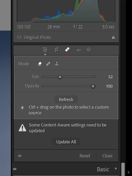 Over the last month, when I use the Heal and Mask tools, LRC comes up with "Some Content-Aware settings need to be updated". I press the "Update All" and continue, but it is slowing down my editing. Then when I close down LRC and come back another day, the same updates are requested on every single photograph. Even updating to