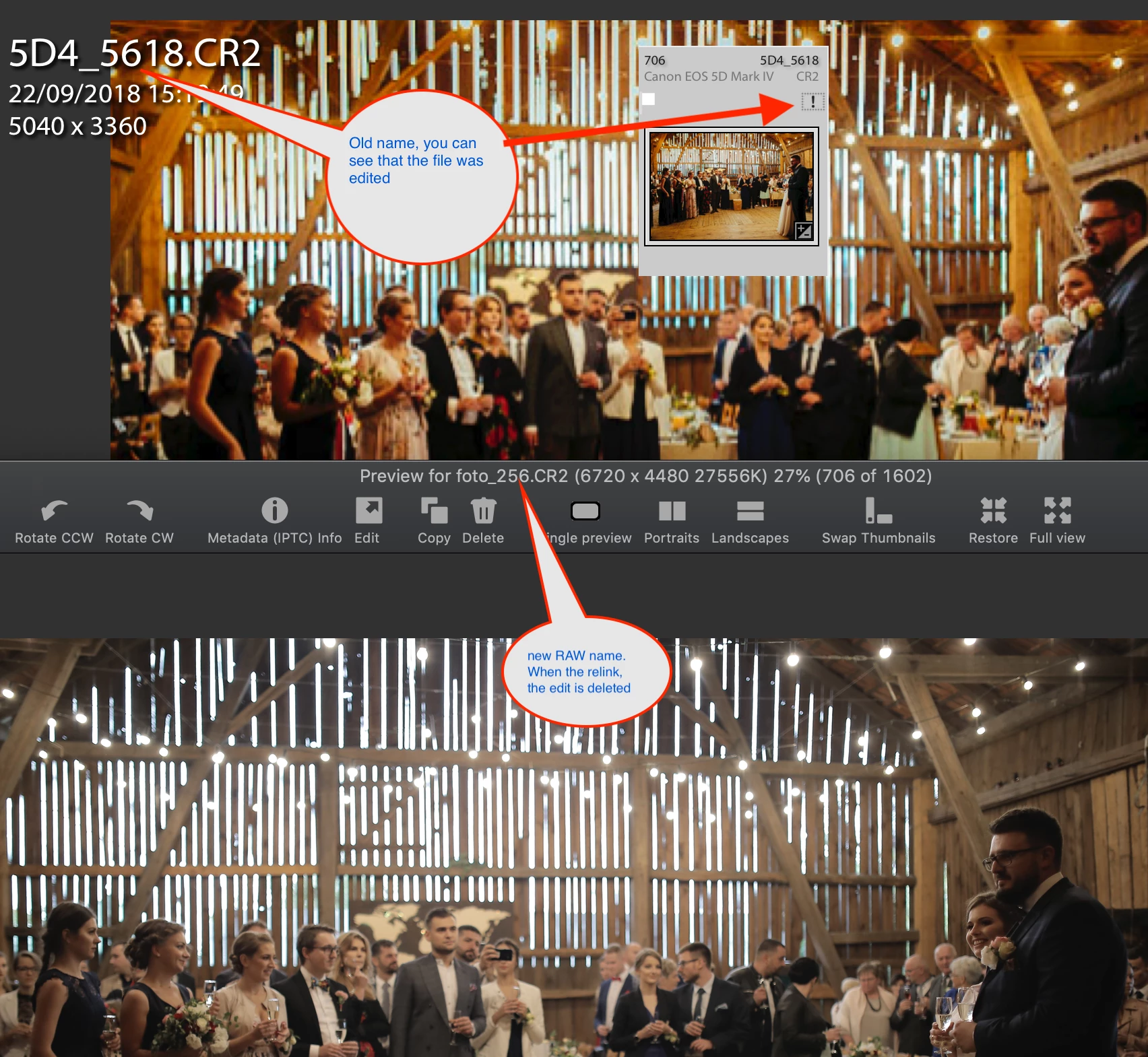 Hello, I have a problem with Lightroom 6.14 (Camera Raw 10.1). I changed the file names outside the program. There were icons with an exclamation mark in the upper right corner. When I try to relink a photo, the editing history is deleted. I will add that in grid view (unlinked photos) I can see thumbnails after editing. What am I doing wrong?
