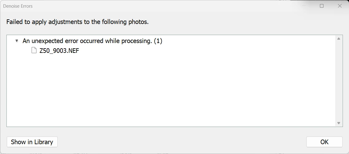 When it works, the denoise (and also the AI object removal or marking) are wonderful and they clearly improve the quality of work on our photography.