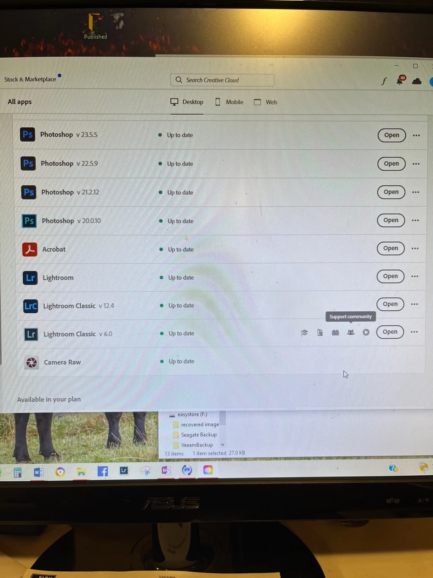 I restarted my computer last week. When I tried to open LR (mine is the pale blue "Lr" in the middle of black square w/pale blue border and square corners; opens with a purple flower on a black background and says Adobe Creative Cloud Photoshop Lightroom CC), it's showing NO catalog at all. I get a message that says "Lightroom must be upgraded before it can continue syncing with Lightroom mobile." I do pay the monthly fee and updates are done automatically. My Creative Cloud desktop shows this icon as v 6.0 and up to date. But it also shows icons LrC v 12.4 and LR (brighter blue w/rounded corners) - both of which are up to date. If I open the latter LR, it shows 93 random photos of mine, but doesn't look at all like what I've been using with the develop module. Can someone help me figure out how to get my catalog back...and the edits that have been done on all my photos?