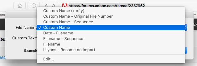 lr change name to file after import file in library instead of number file, example 123.nef, Paola. nef.