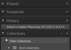 - After that, export does not work. It is not recorded in History and the exported file is not created. I can not move on to any other images. Additional edits can be made, but are not recorded in History. I have to exit LR and come back in before I can make any additional changes. Any changes made after step #2 are not there.