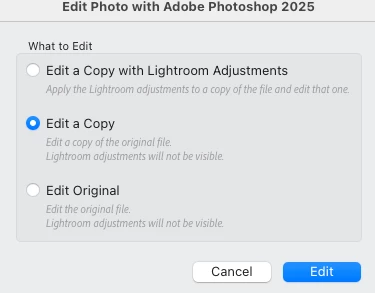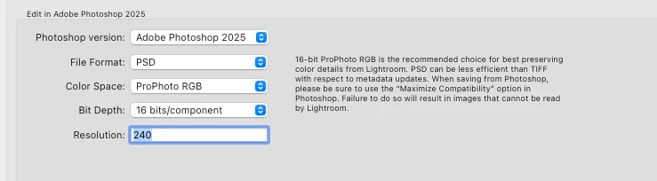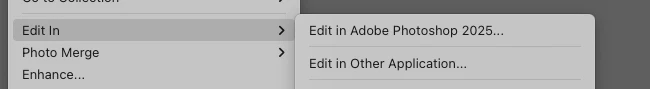 However, even though I've restarted both Lightroom Class and Photoshop several times, when I choos a tif image and Edit in Adobe Photoshop 2025 - top item,