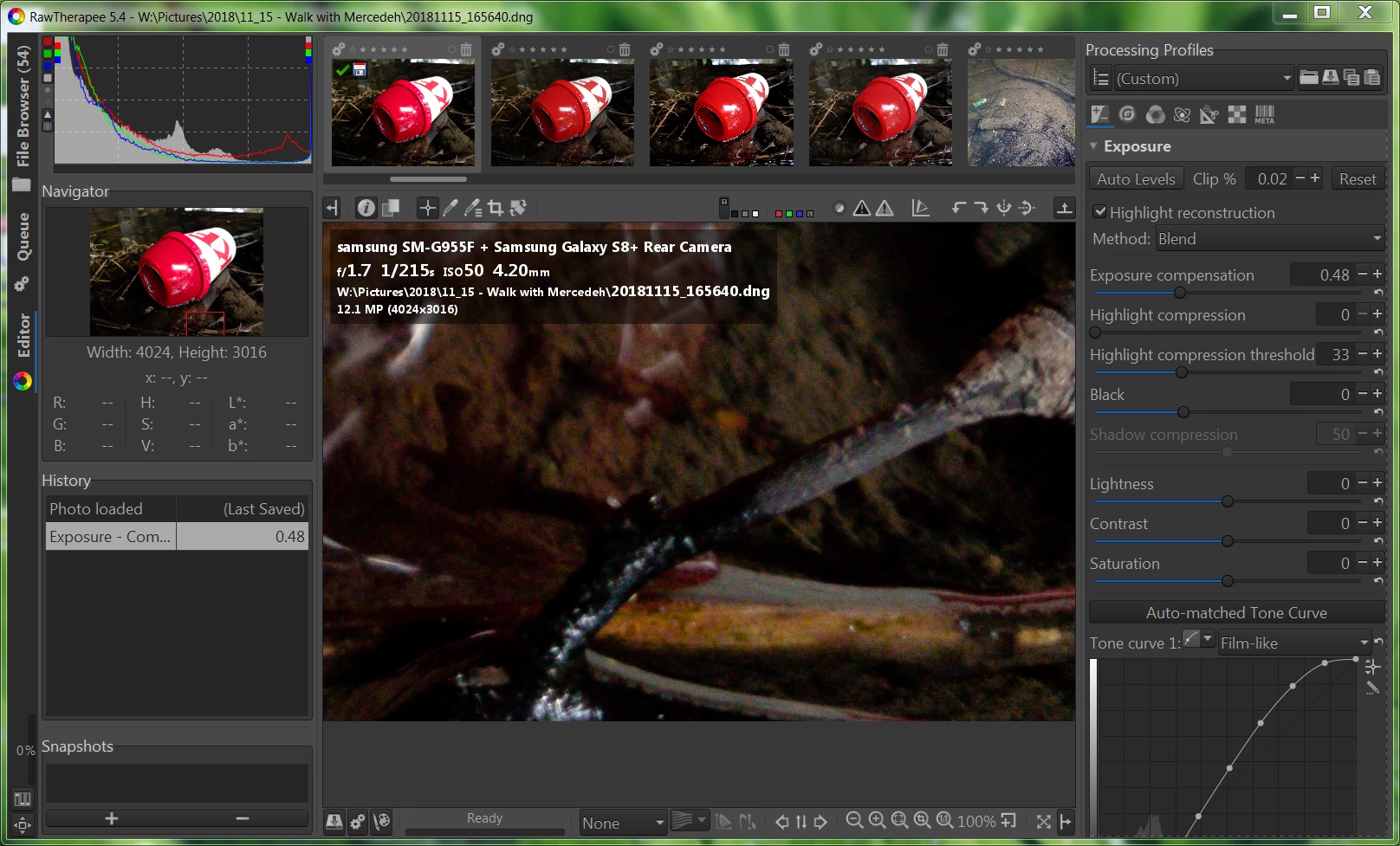 I'm using stock camera app on Galaxy S8+, shooting RAW (in DNG format) + JPG.