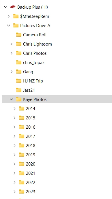 This snip from LR shows my hard drive, but the folders are not complete or the actual ones on that hard drive. They are the result of uploading a catalogue in a last ditch attempt to find my images.