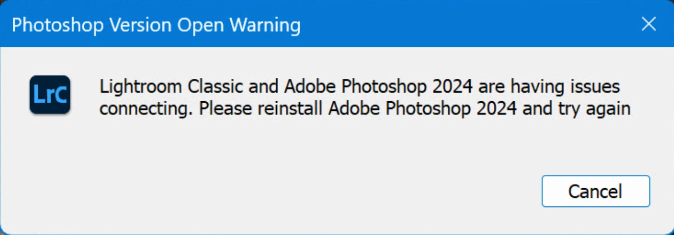 When in LR, You have selected an image, you click on it and select EDIT IN PS. PS opens but no image is imported.