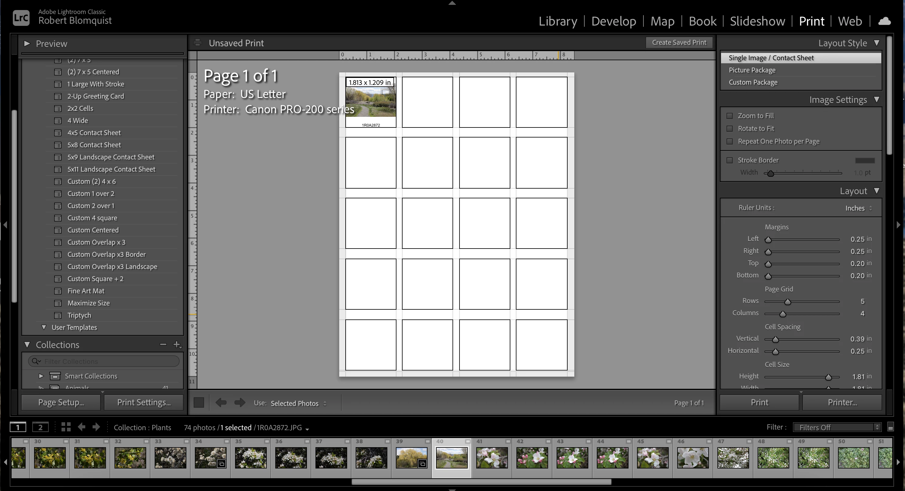 Select multiple images on the filmstrip (or in grid view before you enter the print module)