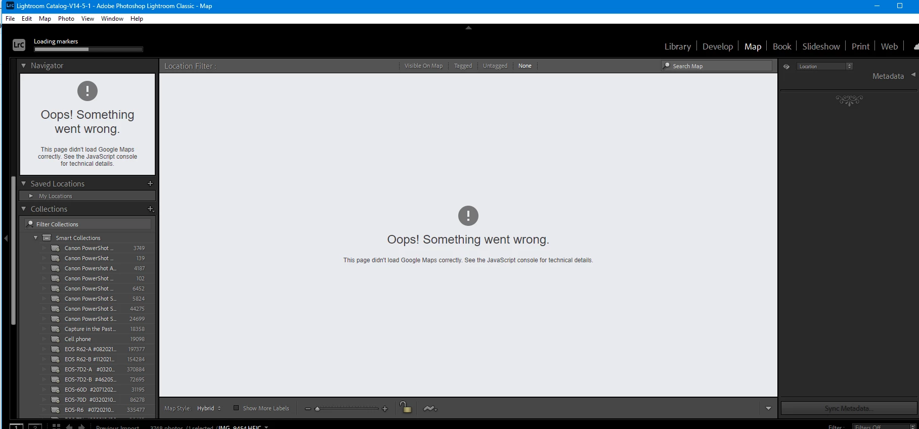 Start up LRC 14.5.1 and started getting this error message "oops something went wrong. This page could not load google maps correctly see the javascript console for tech details. what do I do?
