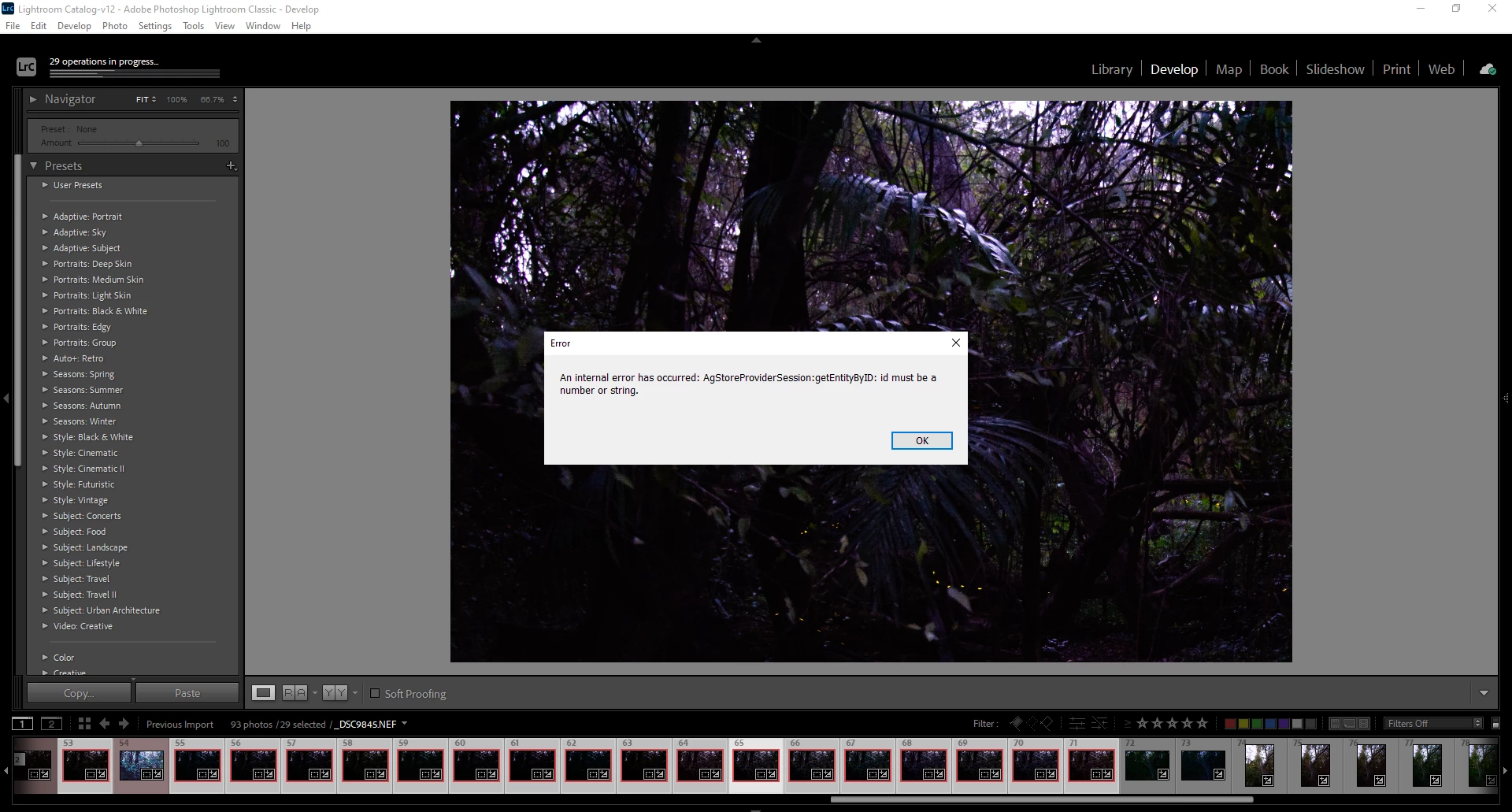 I was attempting to stack/edit a batch of images from LRC to PS but as it began processing I received a popup message: An internal error has occurred: Agstoreprovidersession :GetidentitybyID : id must be a number or string.