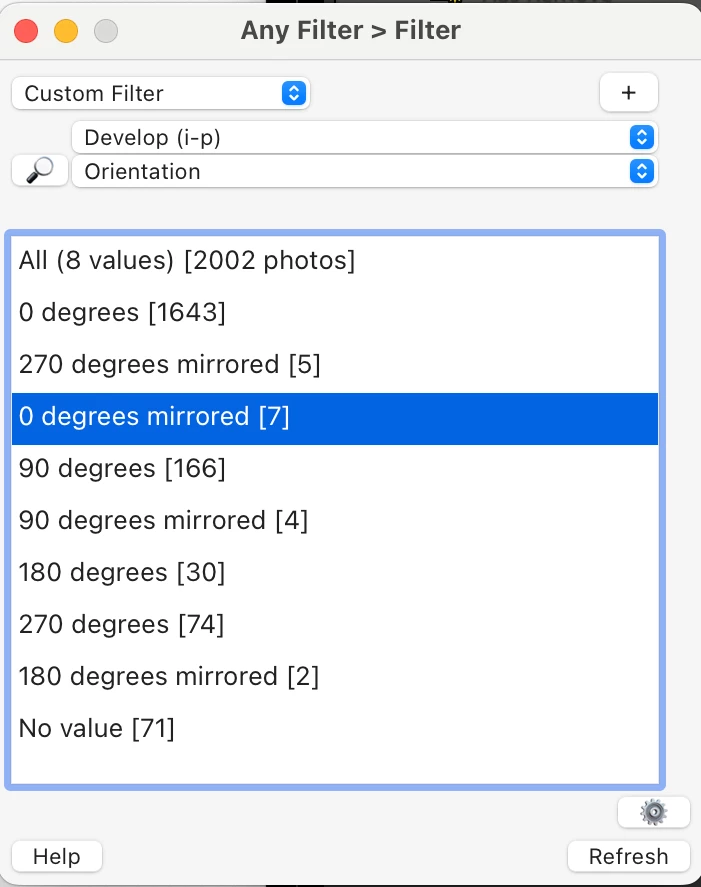 LrC - horizontal gespiegelte Fotos identifizieren