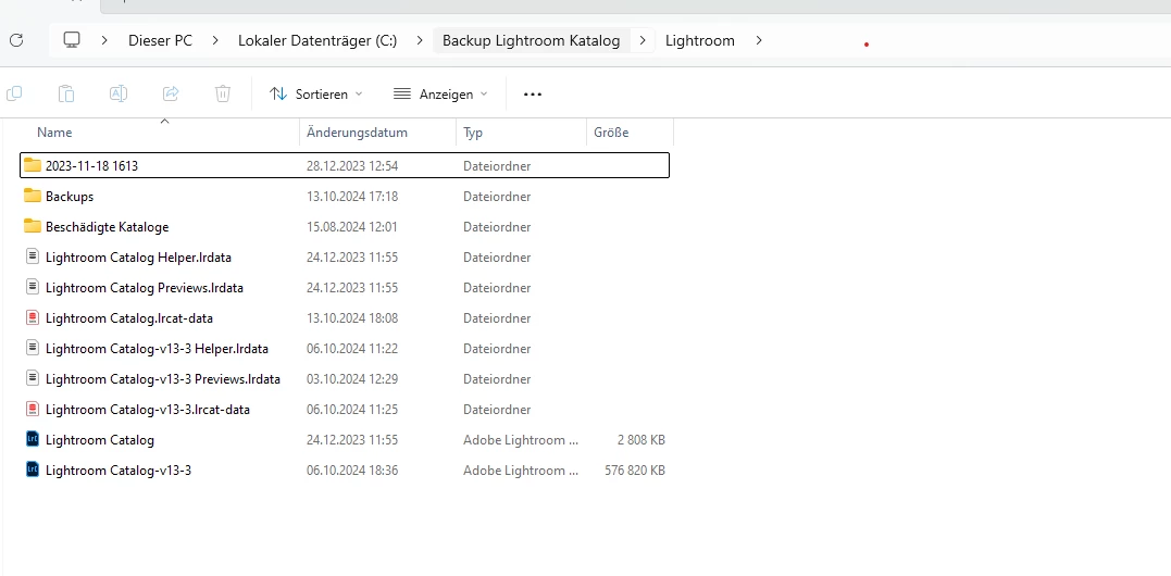 I can open the "Lightroom Catalog" from last year when I set up the PC, but all my catalogs and presets are gone. Neither the 13.3. file nor the backups open, then the programm goes back to opening in the background. I have several thousand pictures in there from commercial shootings, so I´m really really anxious about loosing those.