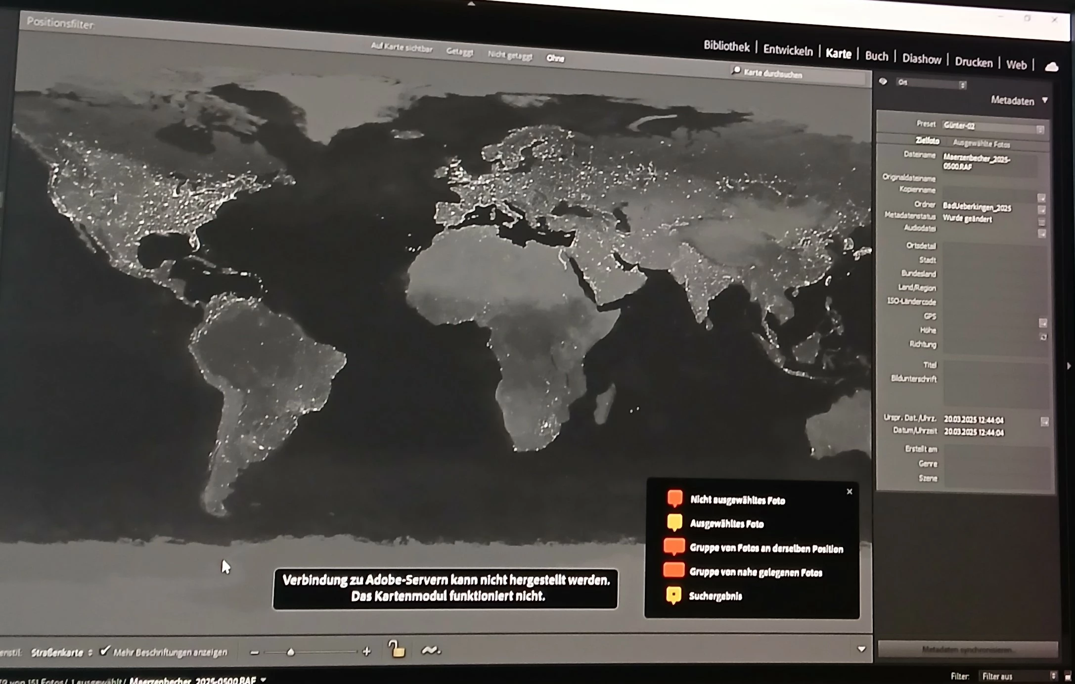 LRC-Meldung: Keine Verb. zum Adobe-Server. Das Kartenmodul funktioniert nicht
