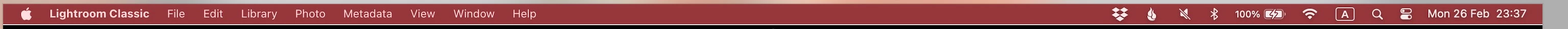 LrC on MacOS X Sonoma on i9 chip (Mac Book Pro 2019) – menu bar randomly turns red for a short time.