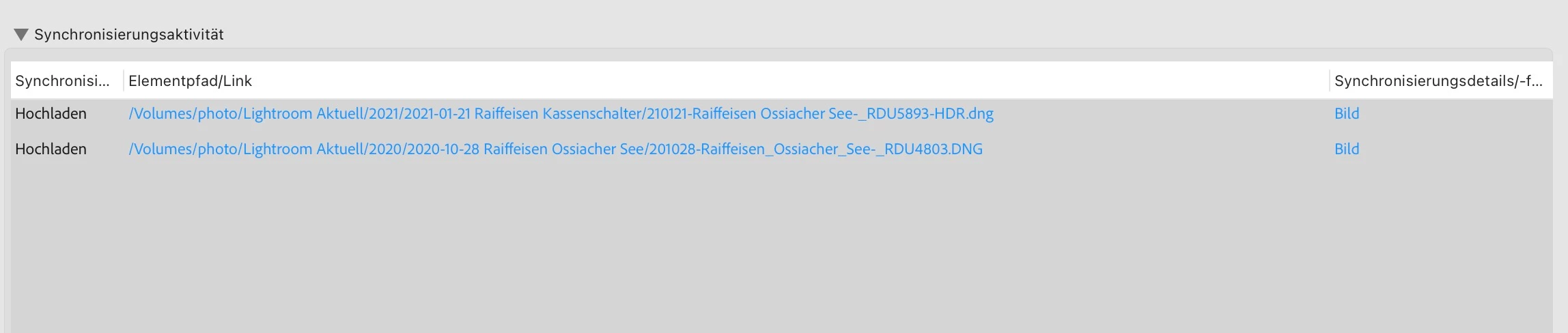 Lightroom Classic zeigt 2 Datein die permanent (seit Wochen) einen Synchronisationsfehler zeigen.