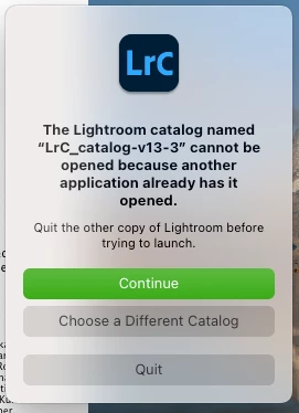 I downloaded the latest LRc (may 9th). Now it won't open my catalog, telling me it already being used (it's not). I uninstalled and reinstalled LRc. Shut down, restarted the mac. No joy.