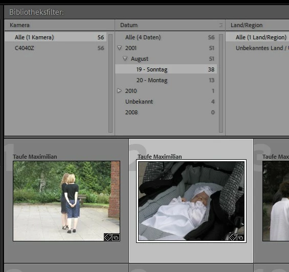 - Der Bibliotheksfilter findet z.B. ein Bild im August 2001, was korrekt ist.