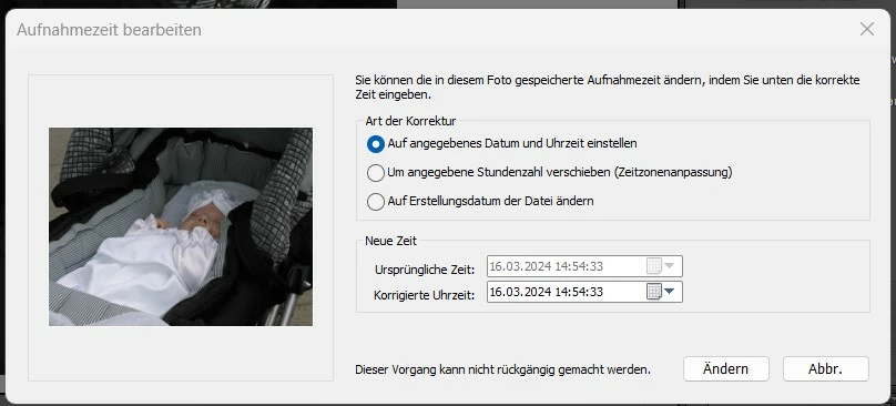 "EXIF" - "Datums- oder Zeitänderungen in proprietäre Raw-Dateine schreiben"
