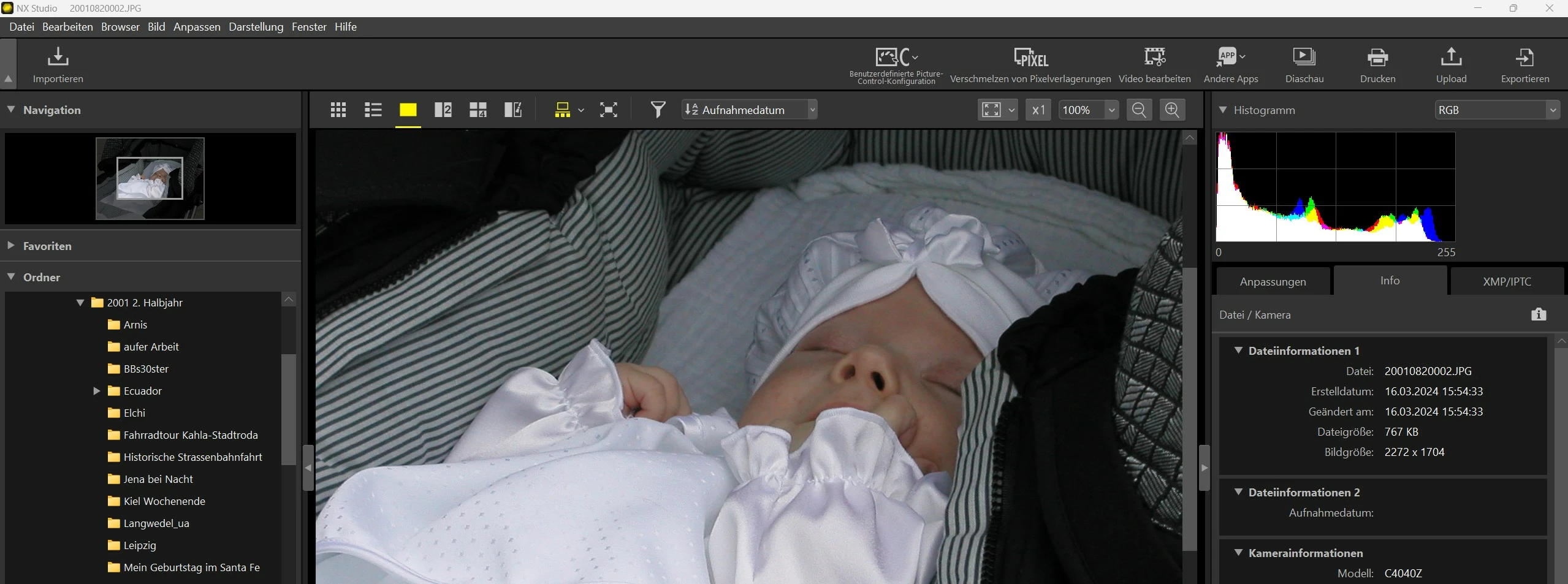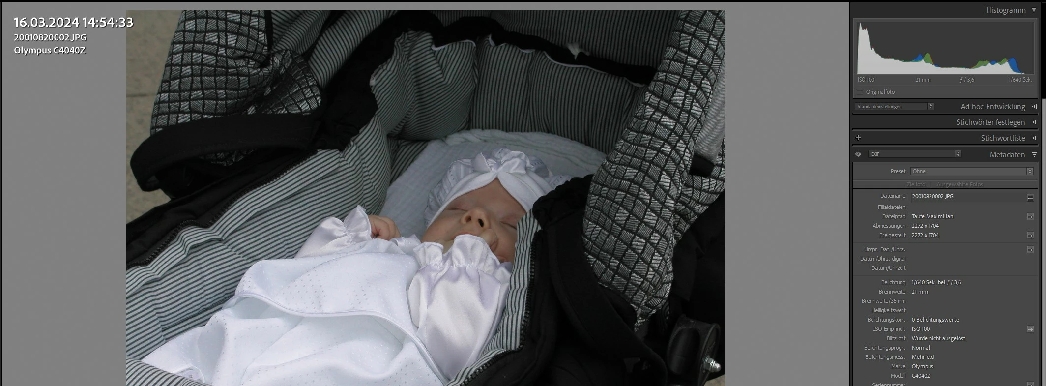 Problem: Lupenansicht zeigt falsches Aufnahmedatum an, EXIF-Datum ist leer