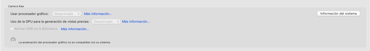 He ido a preferencias, a rendimiento y tengo la GPU desabilitada y me dice que no es compatible con mi sistema. Antes de la ultima actualizacion funcionaba perfectamente.
