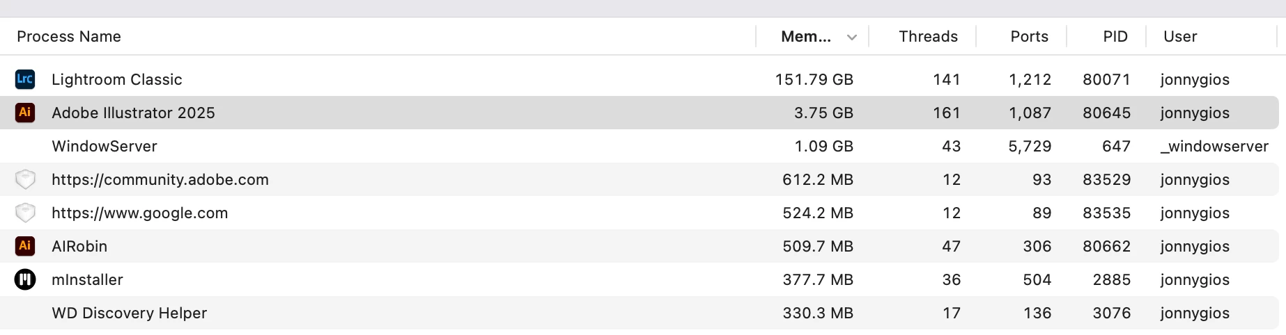 Activity monitor is saying its using 150 GB of RAM ! Should only be a max of 5GB- What's going on ADOBE?
