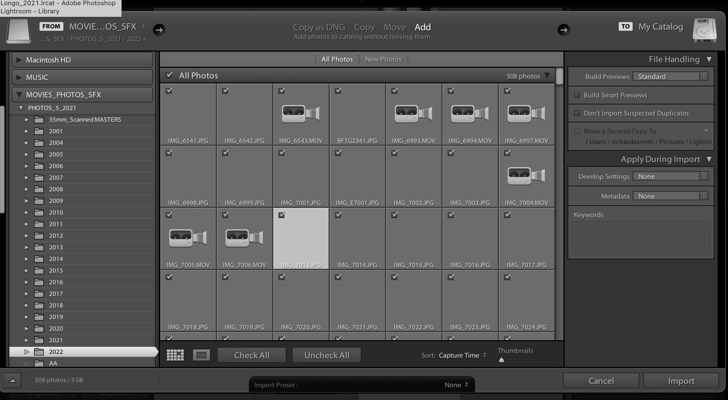 All previously imported photos from years of imports appear normally.