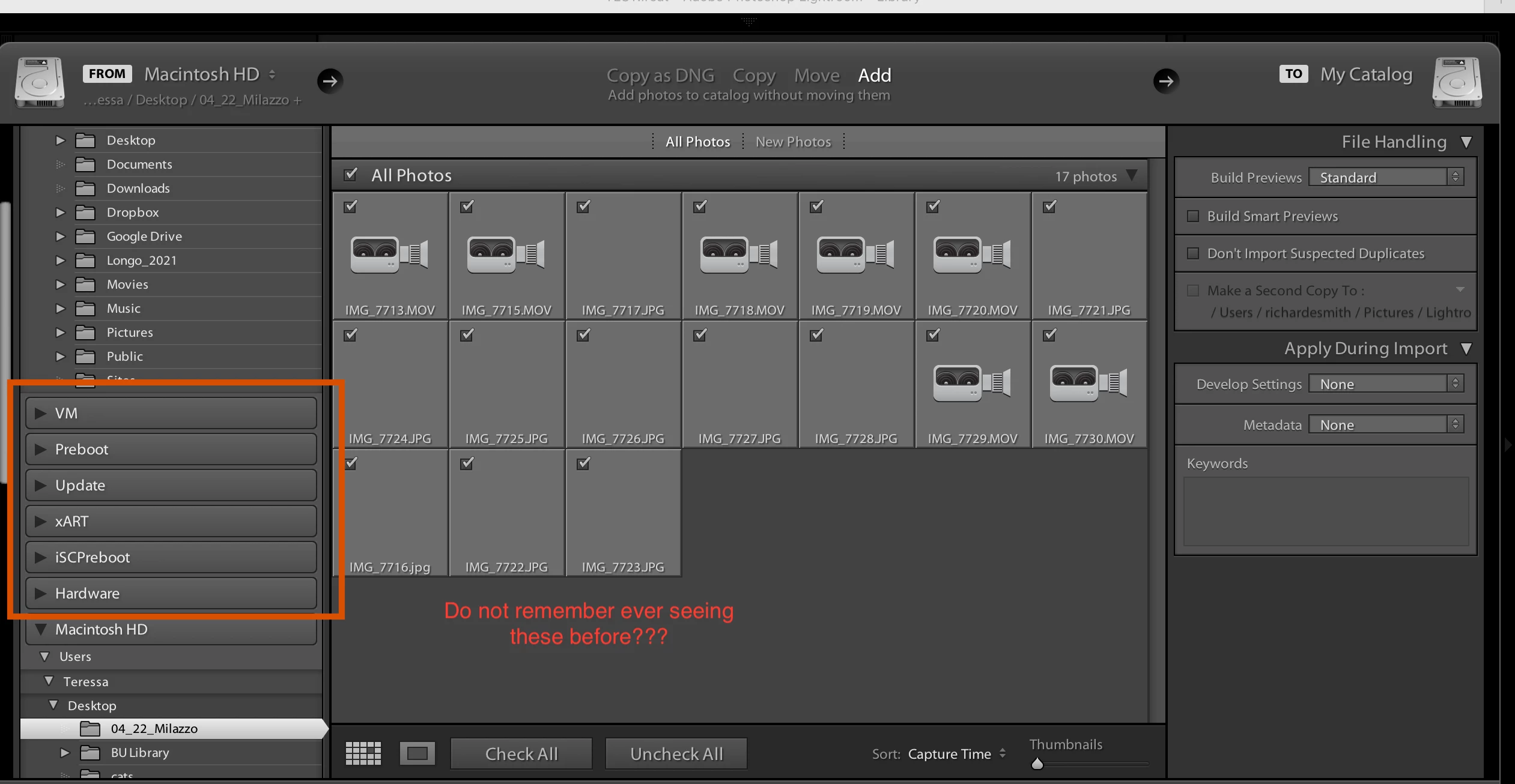 Meta data on preview grid window for import OVER totally gray thumbnail NOT GRAYED OUT