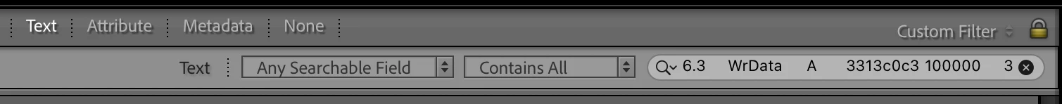 While trying to search by metadata in the Library/Grid module, the user accidentally pasted an entire spreadsheet (many rows/columns of data) into the search field.