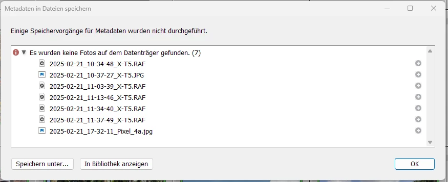 Metadaten können nicht geschrieben werden, weil angeblich keine Fotos dazu gefunden werden