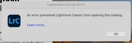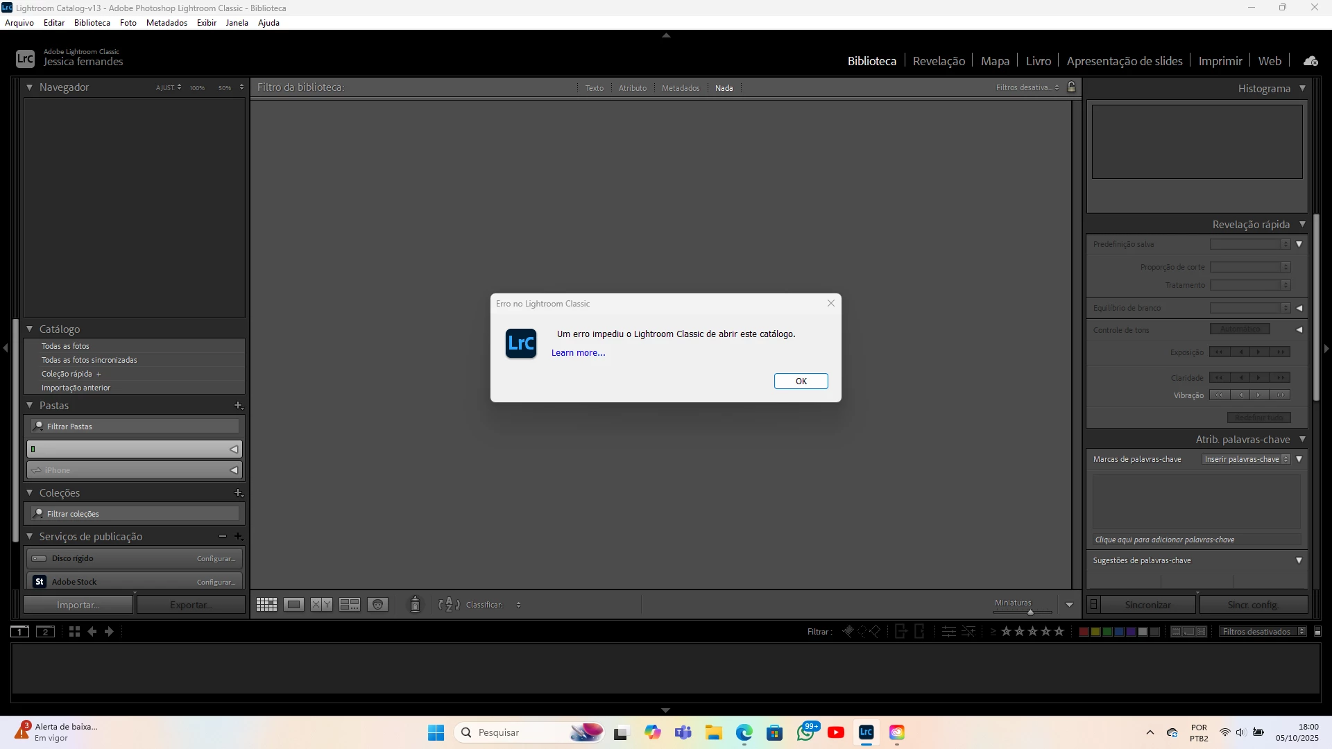 Meu lightroom está dando erro no catálogo