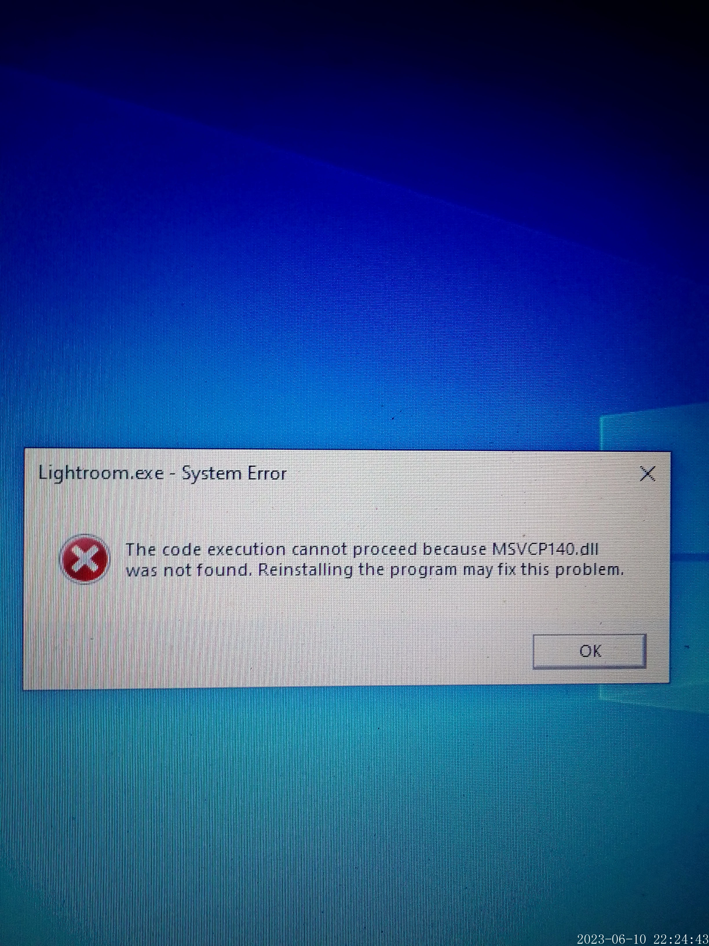 After downloading my Lr classic to my PC, error prompt when I tried clicking on the app icon: missing DLL files.