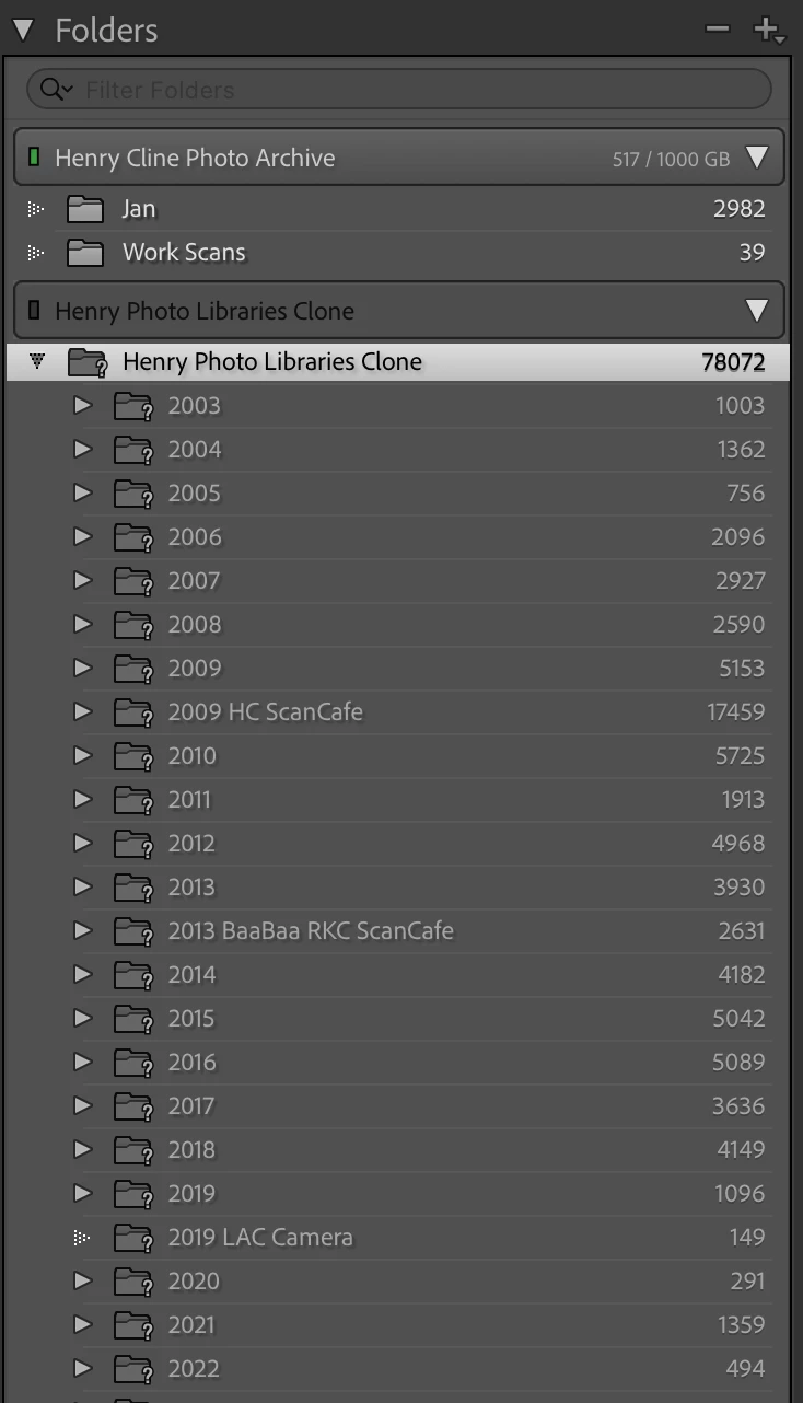 The 'Henry Photo Libraries Clone' drive is not connected or not mounted.