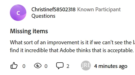 What sort of an improvement is it if we can’t see the last 10 or so weeks’ worth of posts for another 8-10 weeks? I find it incredible that Adobe thinks that is acceptable. Many users have ongoing posts and need help.