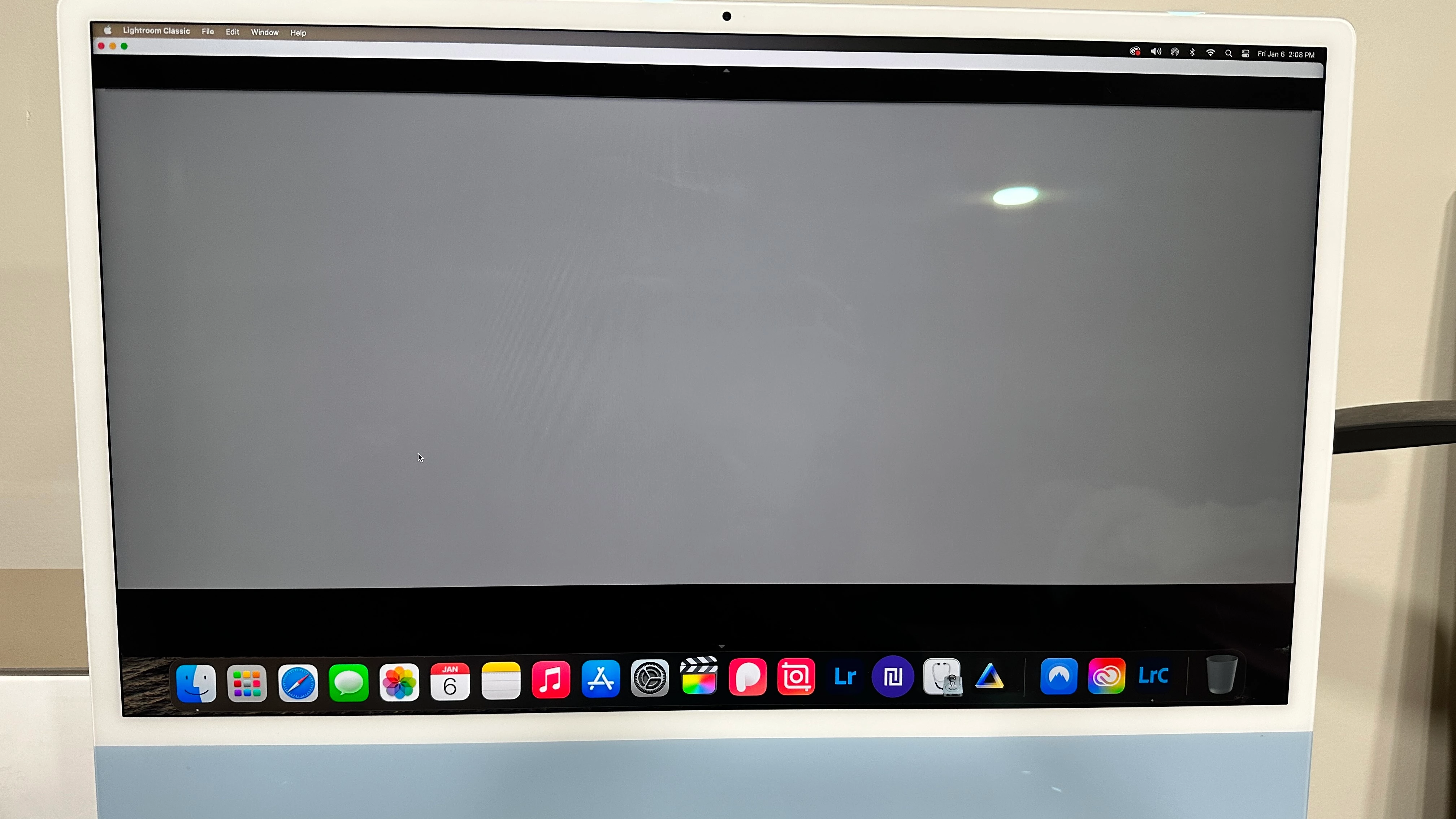 I am using an iMac M1 with Ventura 13.1, and Lightroom classic 12.1. I have used Lightroom mobile on this system for months without issue, but after installing LrC, every time I open the app I get a solid gray screen without any modules, popups, etc showing. "Lightroom Classic, File, edit, window, help" is across the top but nothing else shows whatsoever. If I select the menu and try to go to settings etc the app freezes. If the app is closed, it runs in background until I force quit.