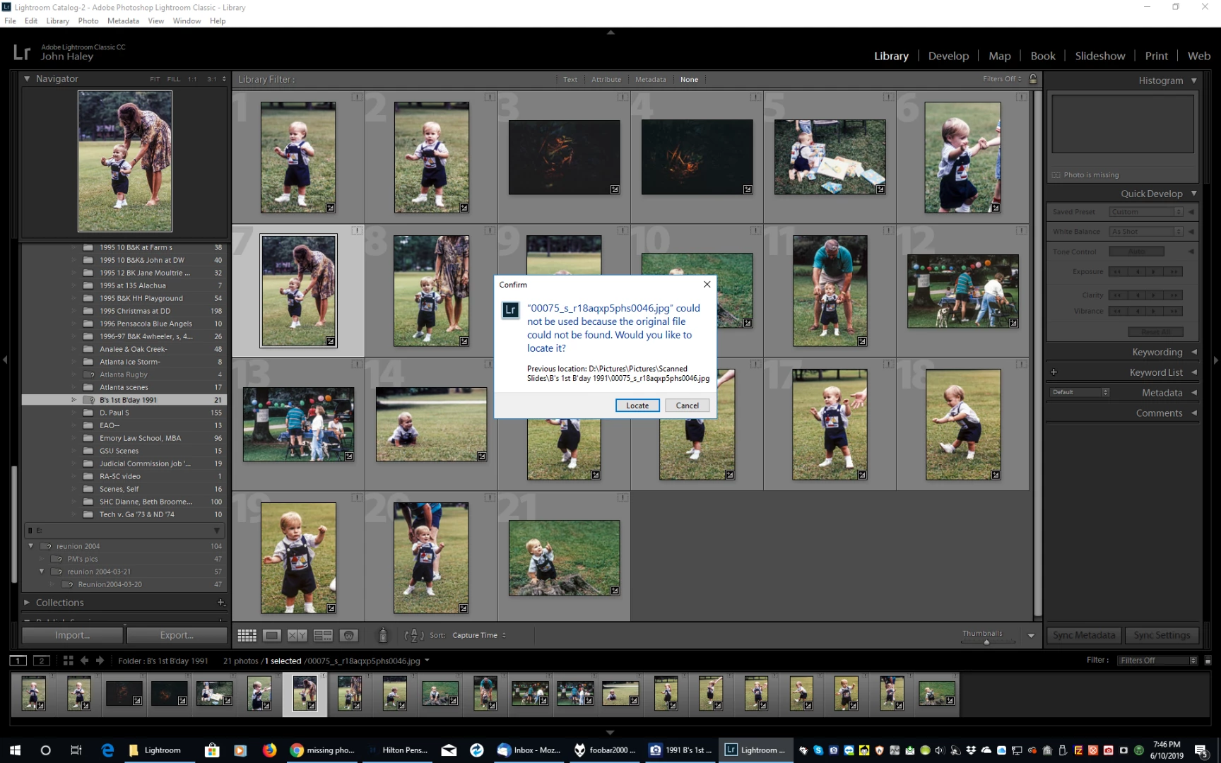 I have located the first batch and LR does not show, not grayed out, not at all (except in Import) the folder they are in. It was looking for them in drive E - so on a portable storage device - but since LR won't allow Add from such externals they had to be Copied to my hard drive, but LR isn't looking for them there.