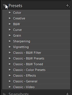 1. Please post a screenshot of the Presets panel in Develop.