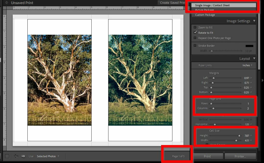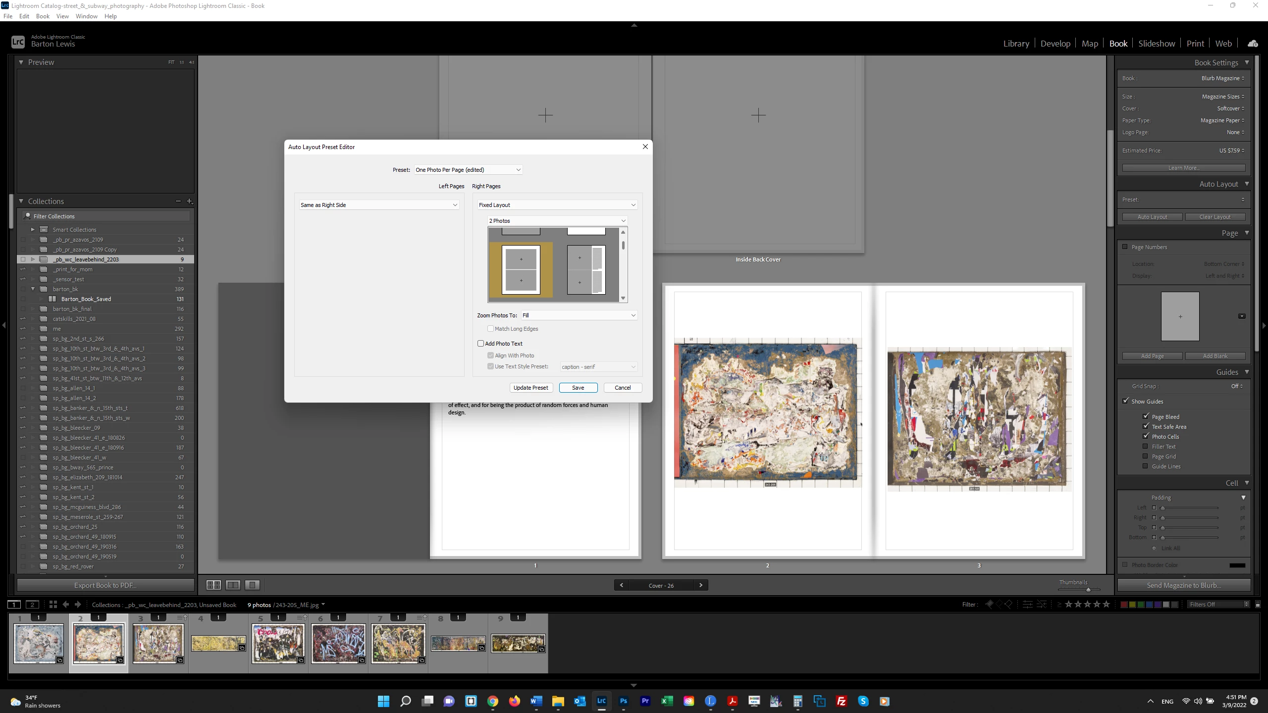 I want to create a simple magazine out of 8 1/2 x 11 paper, folding the paper and stapling it in the middle, with an image on each side of the page. I don't see an otpion to change to Landscape format, so I edited the Auto Layout as shown below for 2 photos per page. But in the 2nd screenshot, the page I changed is showing the image standing on its side. I need to rotate it but don't see an otpion for that. Is there a better way to achieve my desire result? Thank you.