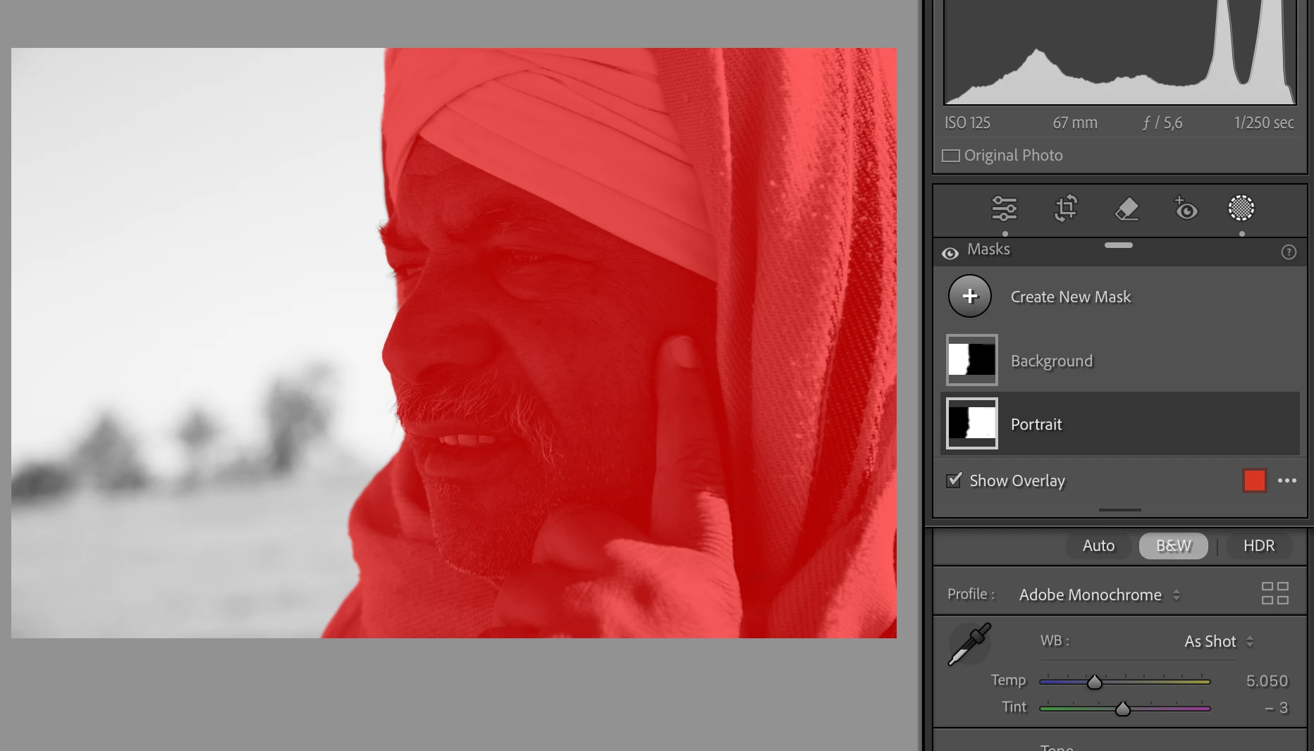 when I do masks one for the portrait and one for the background, choose the portrait and try to change to Adobe monochrome profile it changes the entire picture into black and white monochrome rather then juust the portrait...