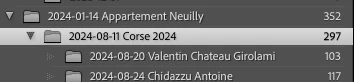 Here I would like the 2024-08-11 Corse 2024 folder to be at the same level as the 2024-01-14 Appartement Neuilly and I dont know how to do that...