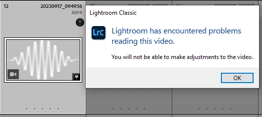 * Lightroom Classic unable to read videos and show error: Error working with video [macOS]