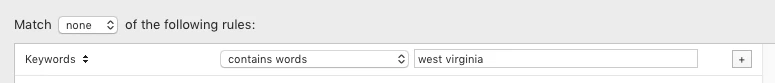 Similarly for "Keywords Contains Words !west !virginia".