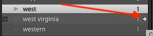 2. In the Keyword List panel, hover over the right end of the keyword "west virginia" and click the right arrow: