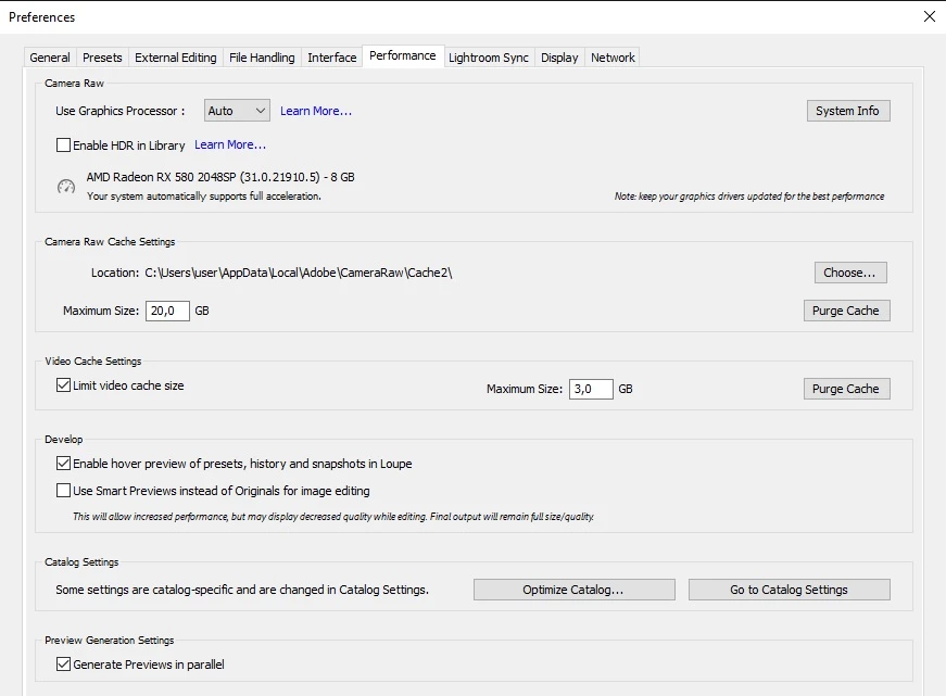 In your first screenshot, disable Use Graphics Processor and see if that solves it. I'm not a Windows expert, but I understand that your GPU is no longer supported by AMD, so the driver is most likely outdated. That could cause this problem.
