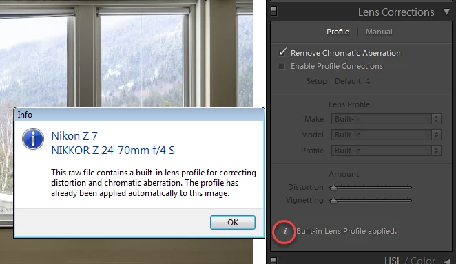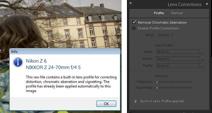 Nikon z lens series like 24-70 f4 & LR classic cc lens correction