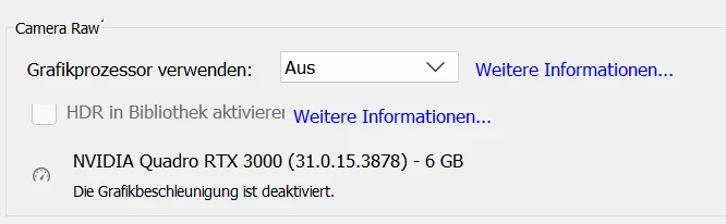 Nivdia Quatro GForce RTX 3000 Laptop GPU 8 GB, Windows 11: Laufend Abstürze bei LrC Benützung